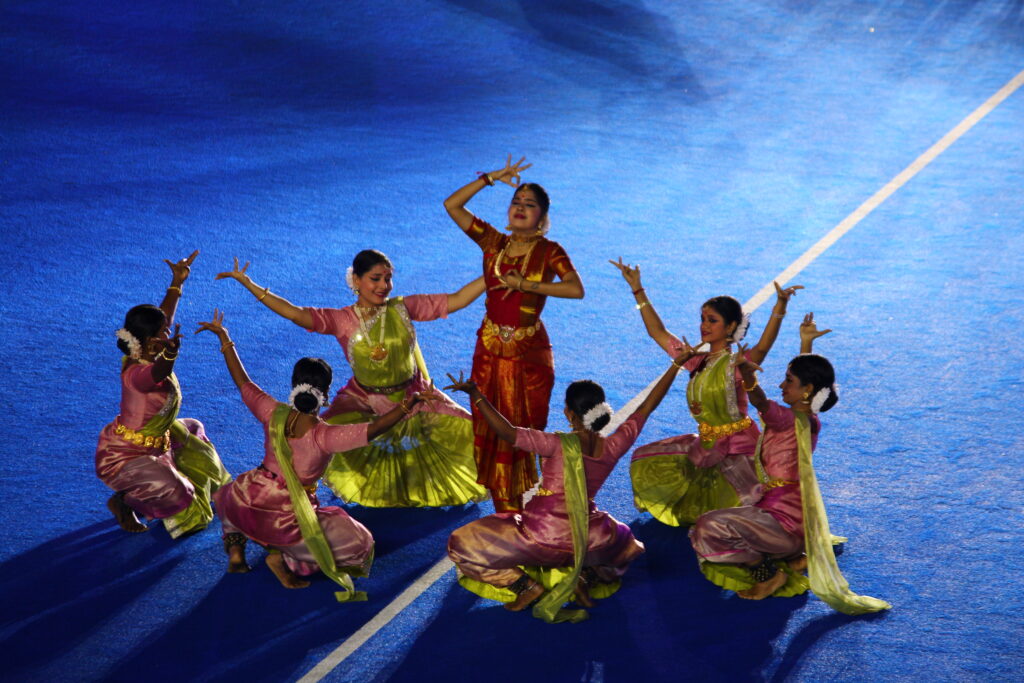 While no celebrity singers or large concert acts were part of the ceremony, the musical ambience was nonetheless festive. Drumbeats, folk rhythms and upbeat instrumental tracks played throughout the event, complementing the dance sequences and keeping the crowd engaged. The simplicity of the performances — driven by students rather than high-profile entertainers — gave the ceremony a community-centred spirit, reflecting Tamil Nadu’s commitment to involving its youth in a global sporting event.